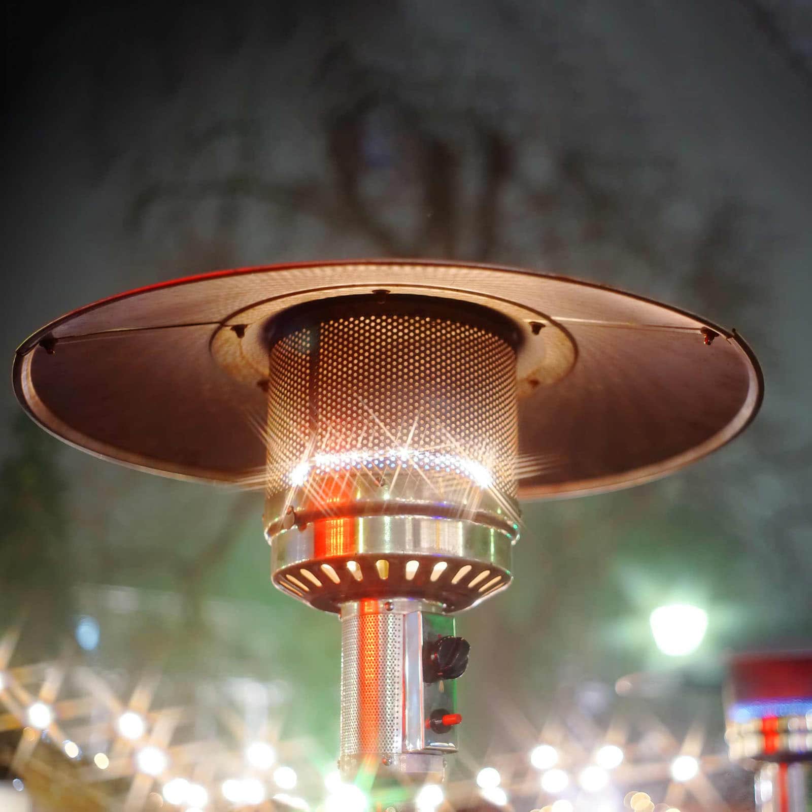 Estufa de Gas para exterior de la marca KEKAI. Hecha en acero inoxidable y carcasa de acero. Potencia calorífica: 13W. Consumo: 870 g/hora. Encendido piezoeléctrico y regulador de termostato. Primer encendido manual. No incluye manguera de gas.