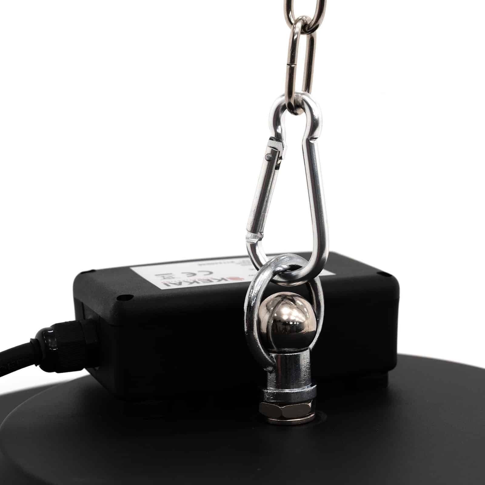 Calefactor eléctrico de infrarrojos halógeno para techo de la marca KEKAI. Calor inmediato. 3 m² de cobertura. No emite CO2. Certificación IP44. Apto para uso exterior.