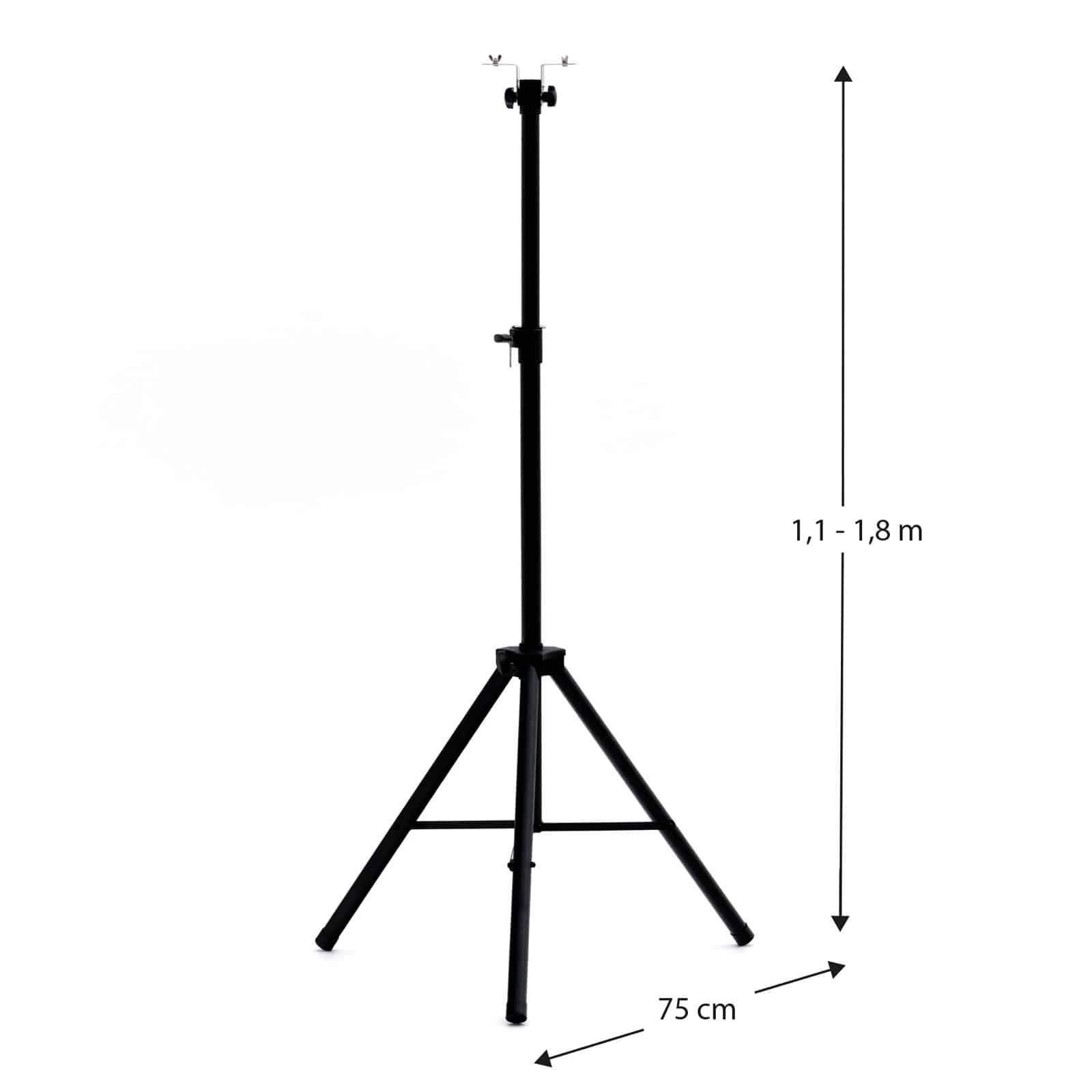 Trípode para calefactores de infrarrojos de la marca KEKAI. Hecho en aluminio. Altura Ajustable: 110 cm y 180 cm. Para colocar en suelo. Compatibilidad: calefactores de infrarrojos modelos como KT0203 y KT0204.