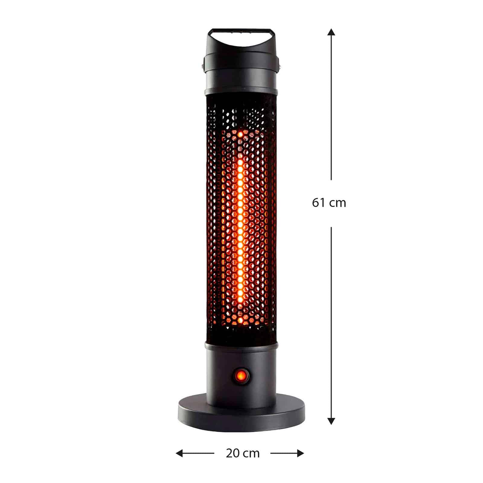 Estufa portátil por infrarrojos de la marca KEKAI. Hecha en aluminio. 1000 W. Función giratoria. Cuenta con IP44. Sistema antivuelco. Superficie de calentamiento: aproximadamente 3 ?.