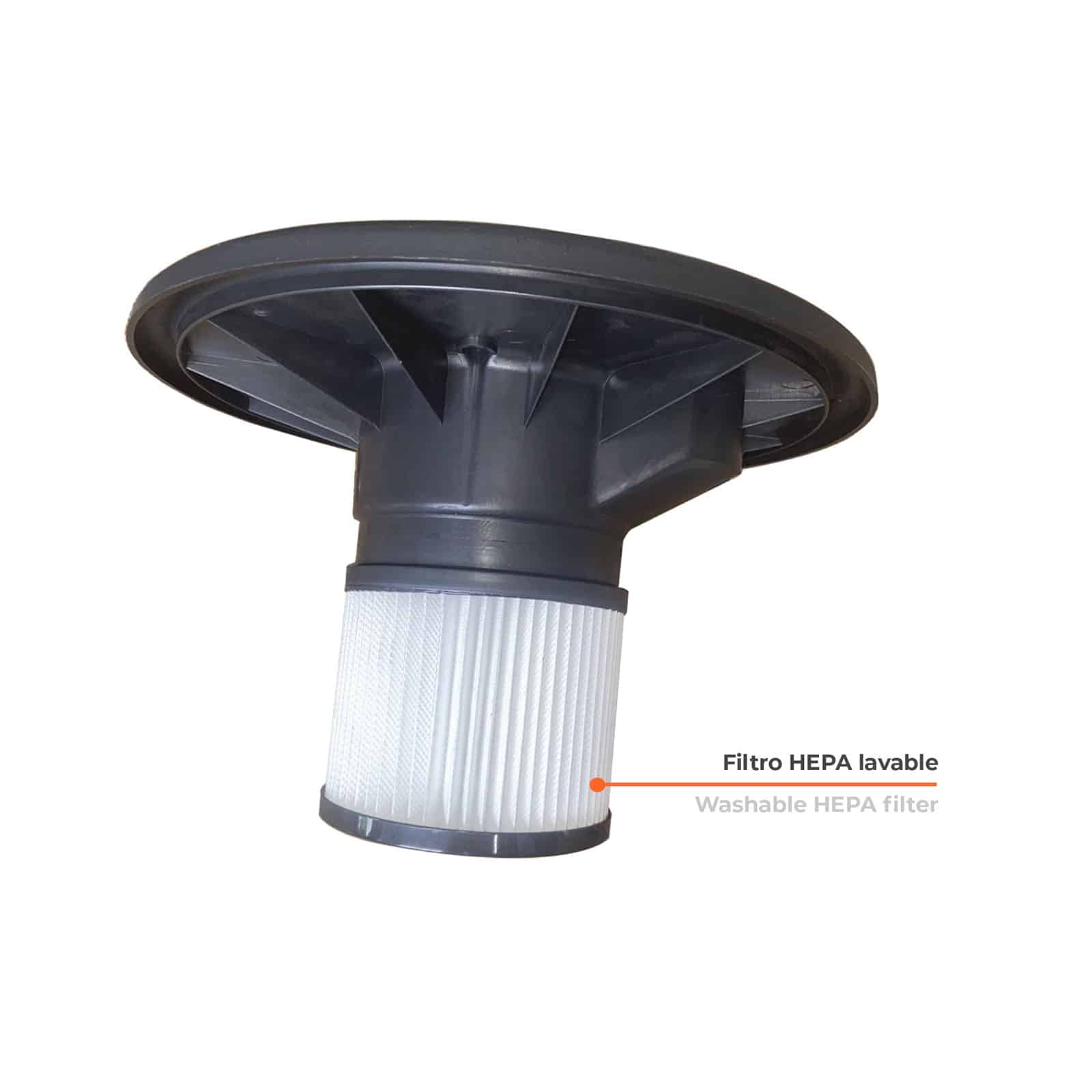 El filtro Hepa para aspiradoras de cenizas está hecho en fibra de vidrio y es un sistema de retención de partículas volátiles presentes en el aire. Estas fibras dispuestas al azar son extremadamente finas y crean un entramado en forma de malla que retiene los compuestos contaminantes.