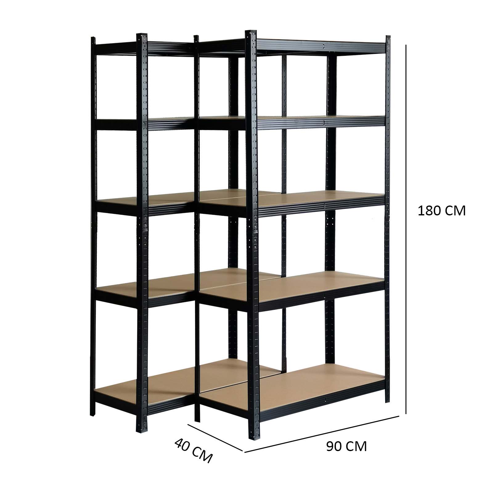 Pack de 2 estanterías metálicas de la marca CatterHouse. Con estructura en acero y, cada una con 5 baldas en MDF ajustables. Carga total: 875 kg global y 175 kg por estante. Certificaciones: CE & REACH, garantía de la calidad del producto.