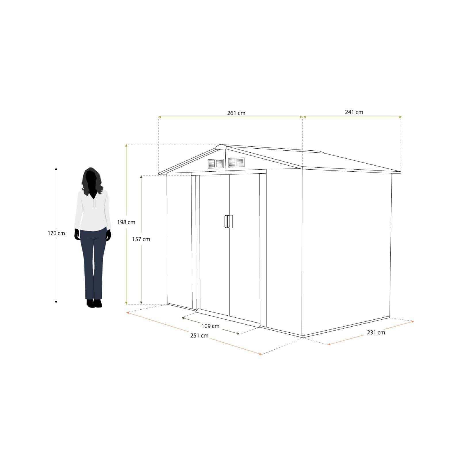 Caseta jardín metálica 241x261x198 cm (6,3 m²) Glasgow verde