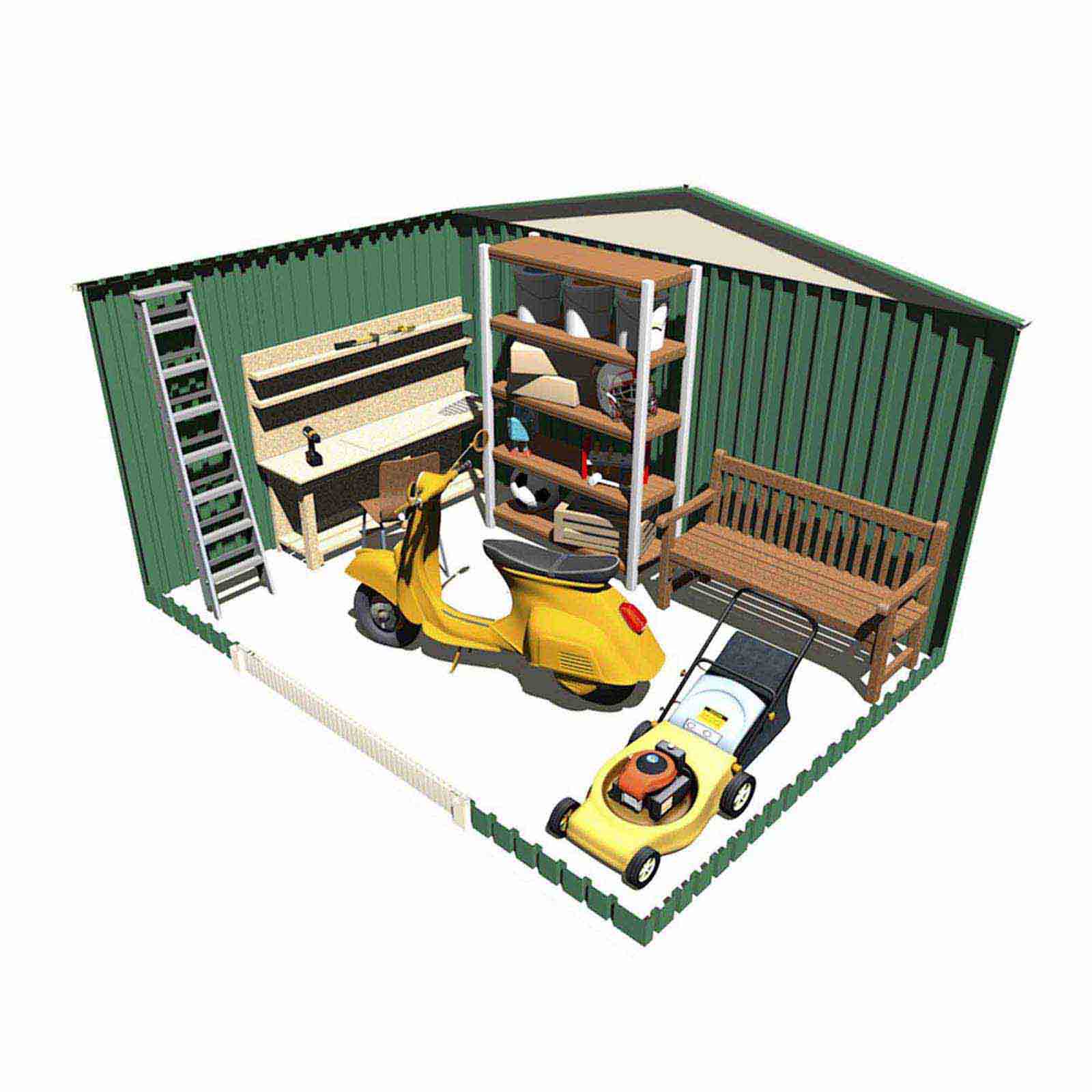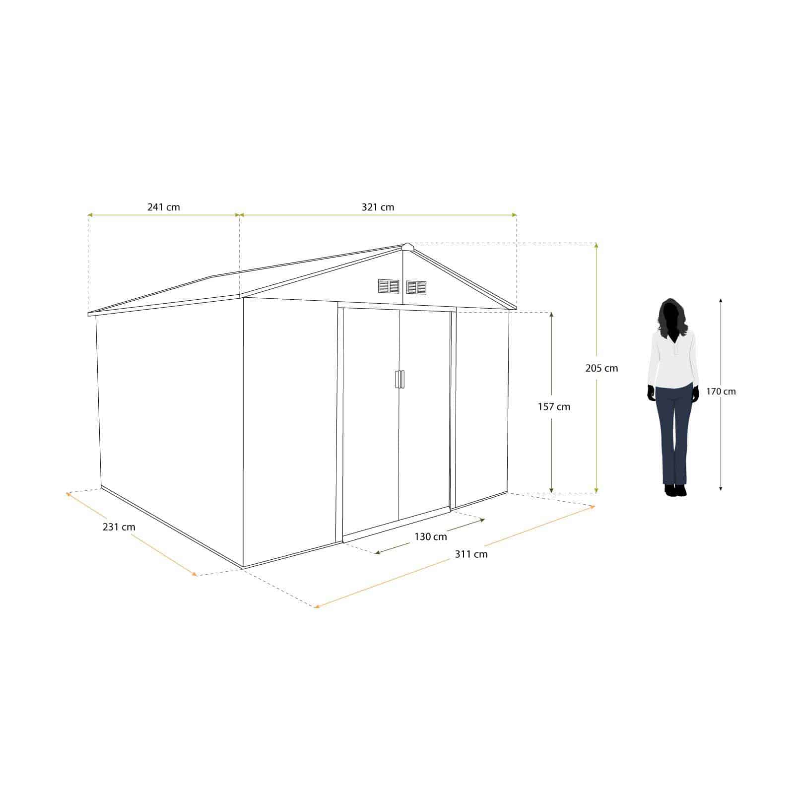 Caseta jardín metálica 241x321x205 cm (7,74 m²) Bristol verde