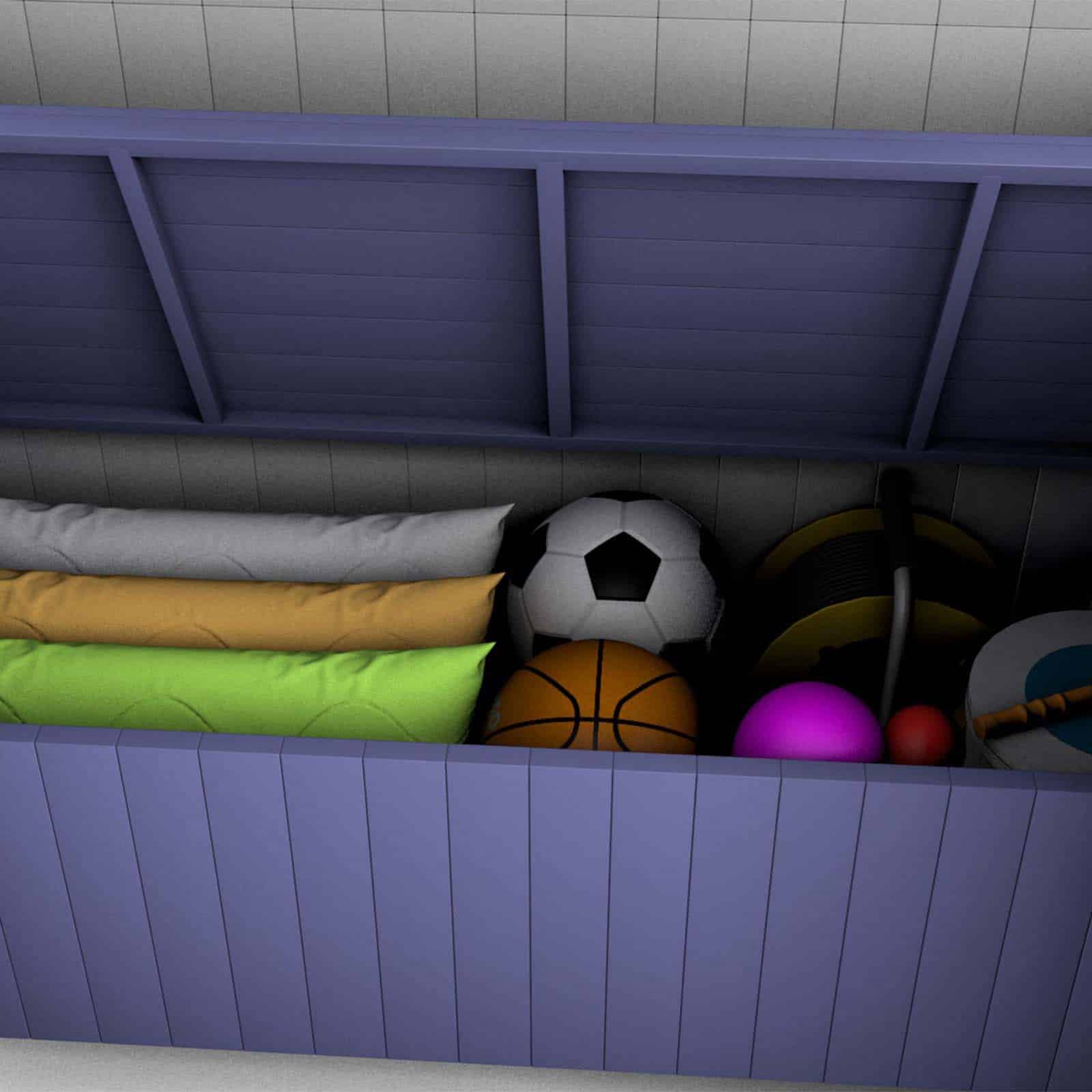 Ideas de uso: este mueble es muy versátil. Es ideal para guardar herramientas de jardinería, juguetes, almohadas, toallas y zapatillas de piscina.