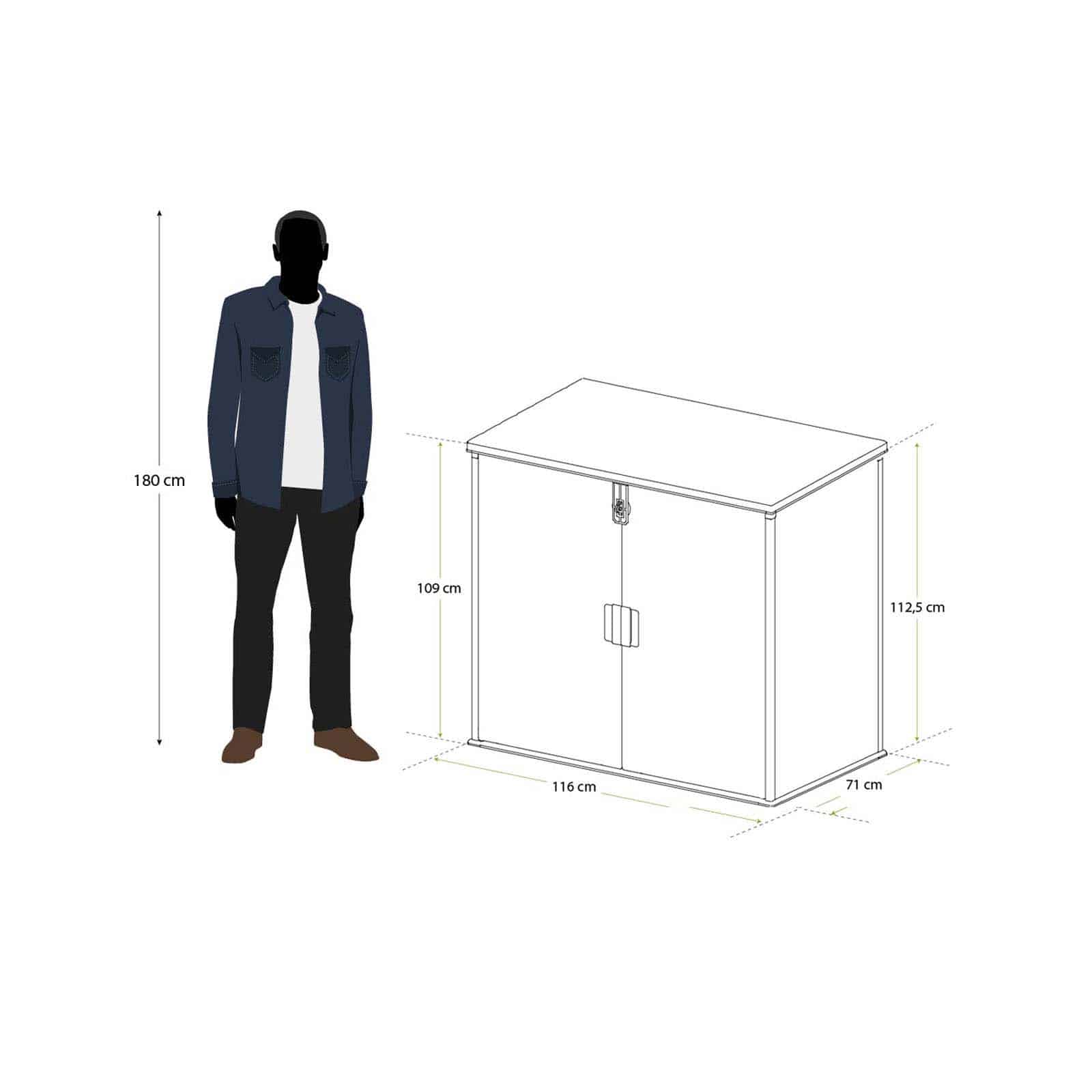 gran capacidad de 775 litros. Diseñado para terrazas, patios y jardines, te permitirá guardar herramientas,