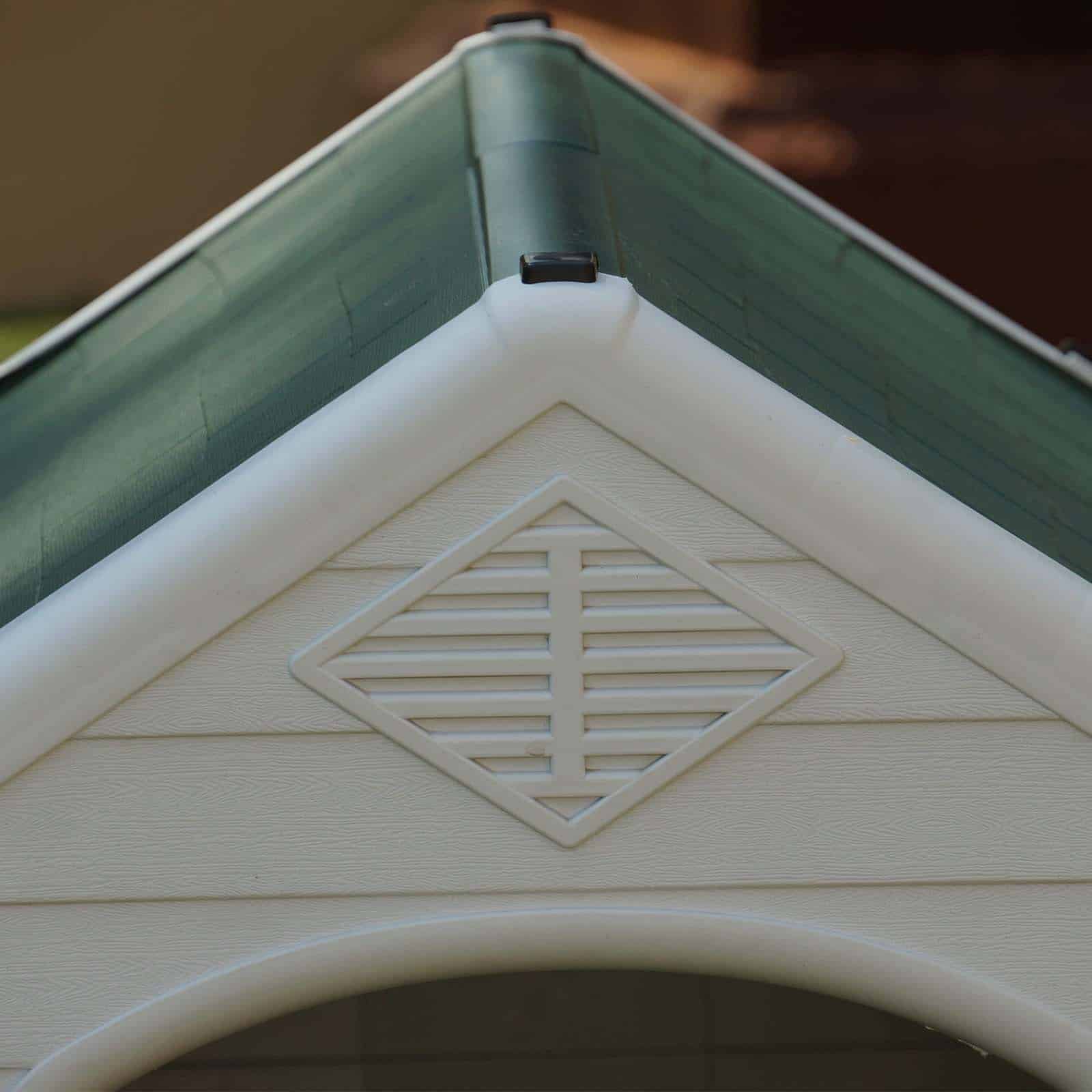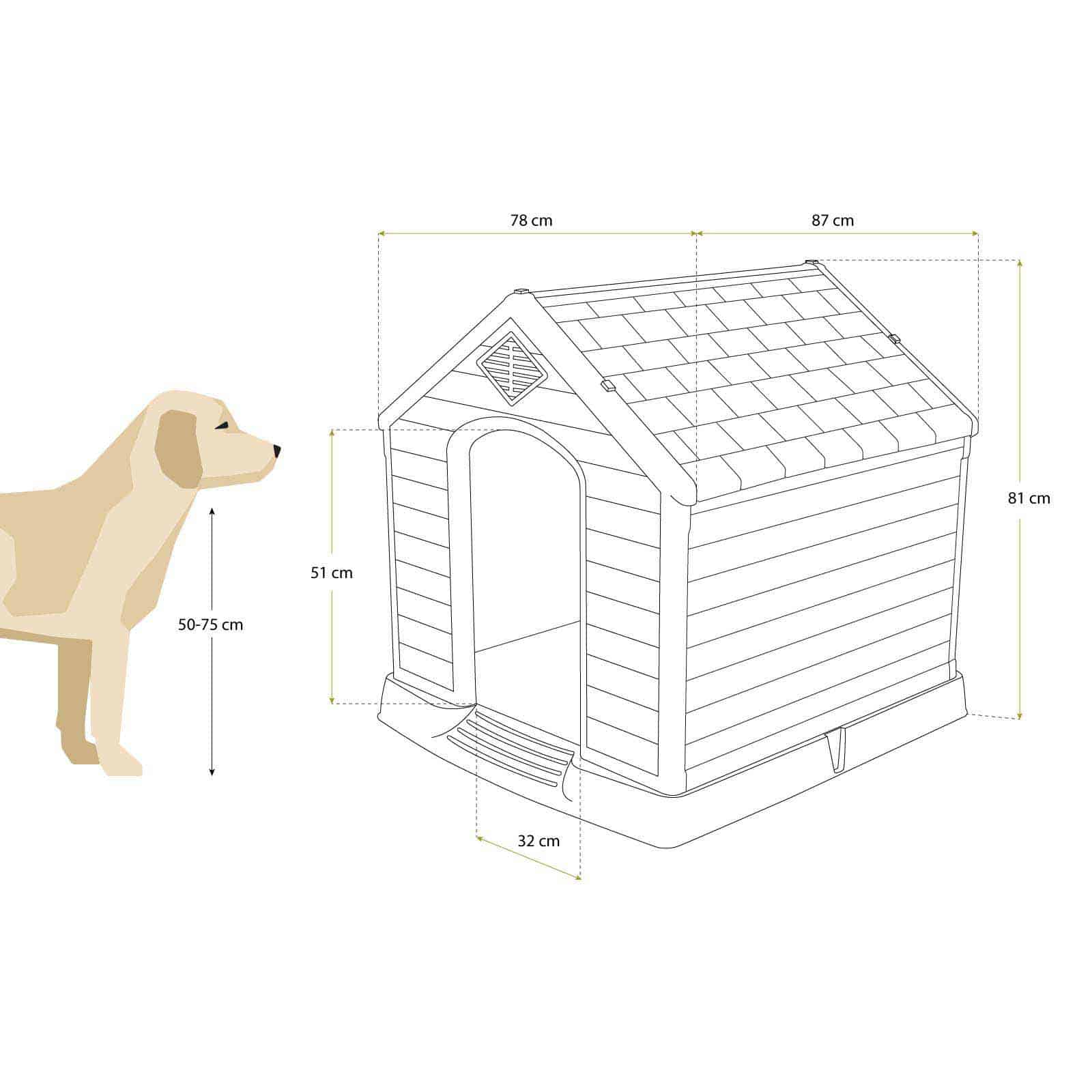 La caseta Zeus Plus hecha en resina está especialmente diseñada para perros o animales de tamaño mediano. Se ha elaborado en resina. Cuenta con un tejado a dos aguas para garantizar un flujo eficiente de agua en caso de lluvia. La unión de las piezas mediante juntas a presión proporciona una construcción segura, sin la necesidad de complicados sistemas de anclaje. Uno de los aspectos más destacados es el suelo incorporado, que permite colocar mantas, colchones o cualquier otro accesorio para mejorar la comodidad de tu mascota. Esta base elevada también ofrece un aislamiento adicional, evitando el contacto directo con el suelo frío o húmedo y creando un espacio seco y cálido.