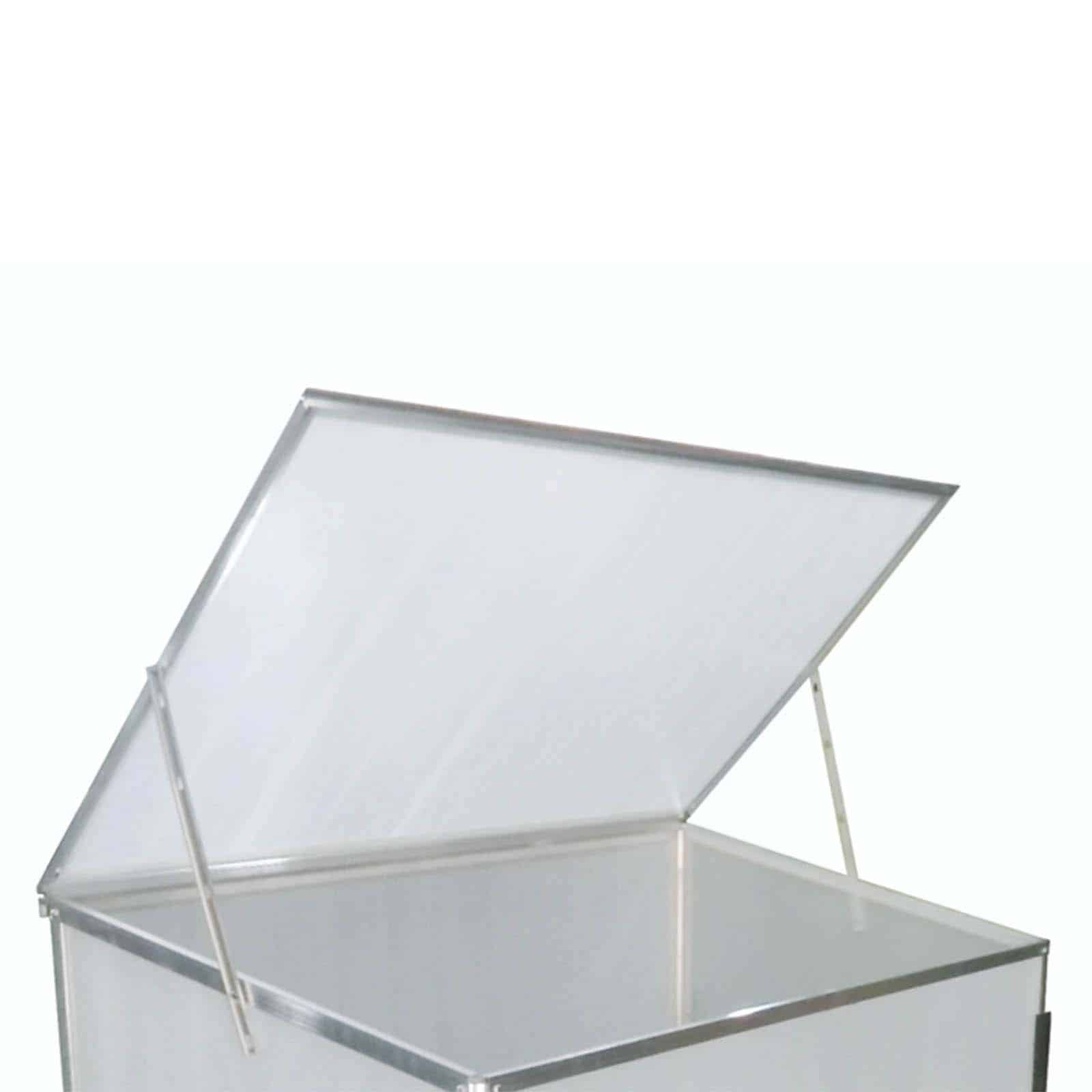 El Invernadero Jaca Elevado I está hecho en policarbonato resistente y cuenta con estructura de aluminio. Una característica distintiva de este invernadero es su capacidad para mantener una temperatura interior al menos 5ºC más alta que la del exterior, lo que facilita el cuidado de las plantas. Además, su diseño ergonómico permite realizar tareas de jardinería en posición vertical, evitando así tensiones y molestias en la espalda. El acceso a su interior se facilita mediante una tapa superior elevable, que brinda una apertura cómoda y práctica para regar, podar o cualquier otra tarea que requiera atención directa. Este modelo incorpora un estante inferior que ofrece un espacio conveniente para guardar herramientas y otros accesorios de jardinería, manteniendo todo al alcance y organizado.