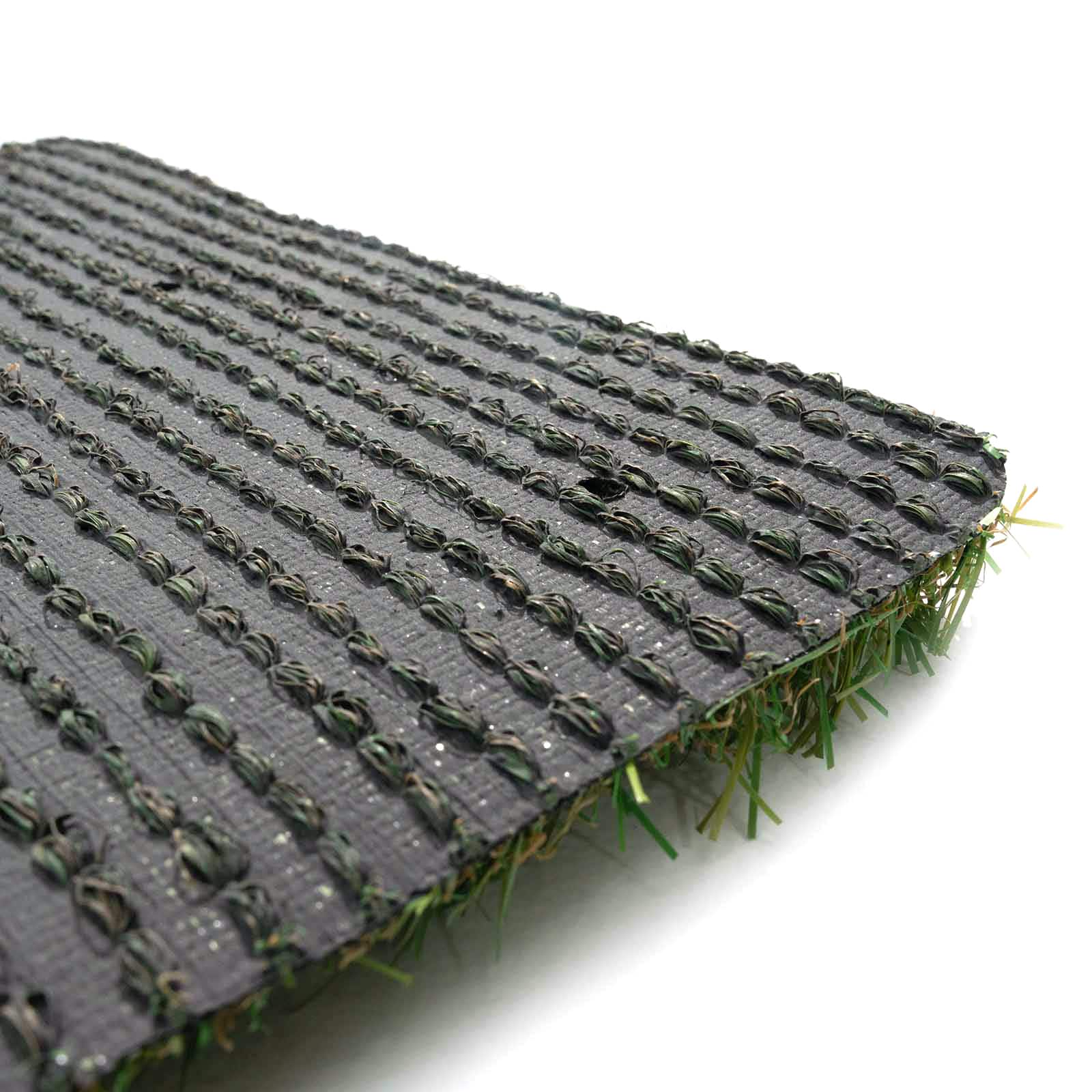Césped artificial con un espesor de 20 mm y efecto memoria. Combinación de 4 tonos de color. 14.700 puntadas por m². Con 7 años de garantía.