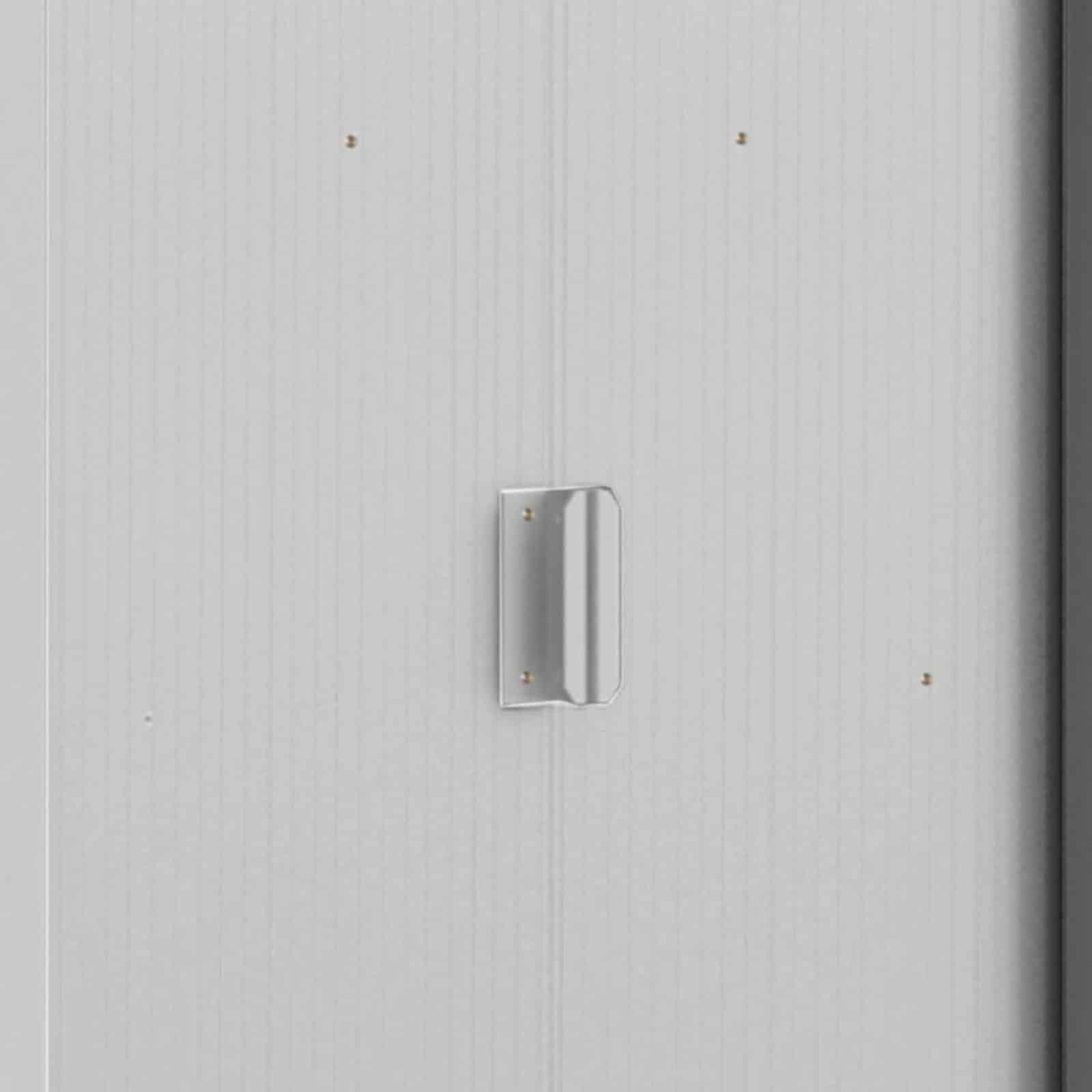 Caseta de jardín Darwen de acero galvanizado, con tejado a dos aguas y puerta corredera. Perfecta para mantener ordenado tu espacio exterior. Son resistentes y cuentan con la ventilación adecuadas.