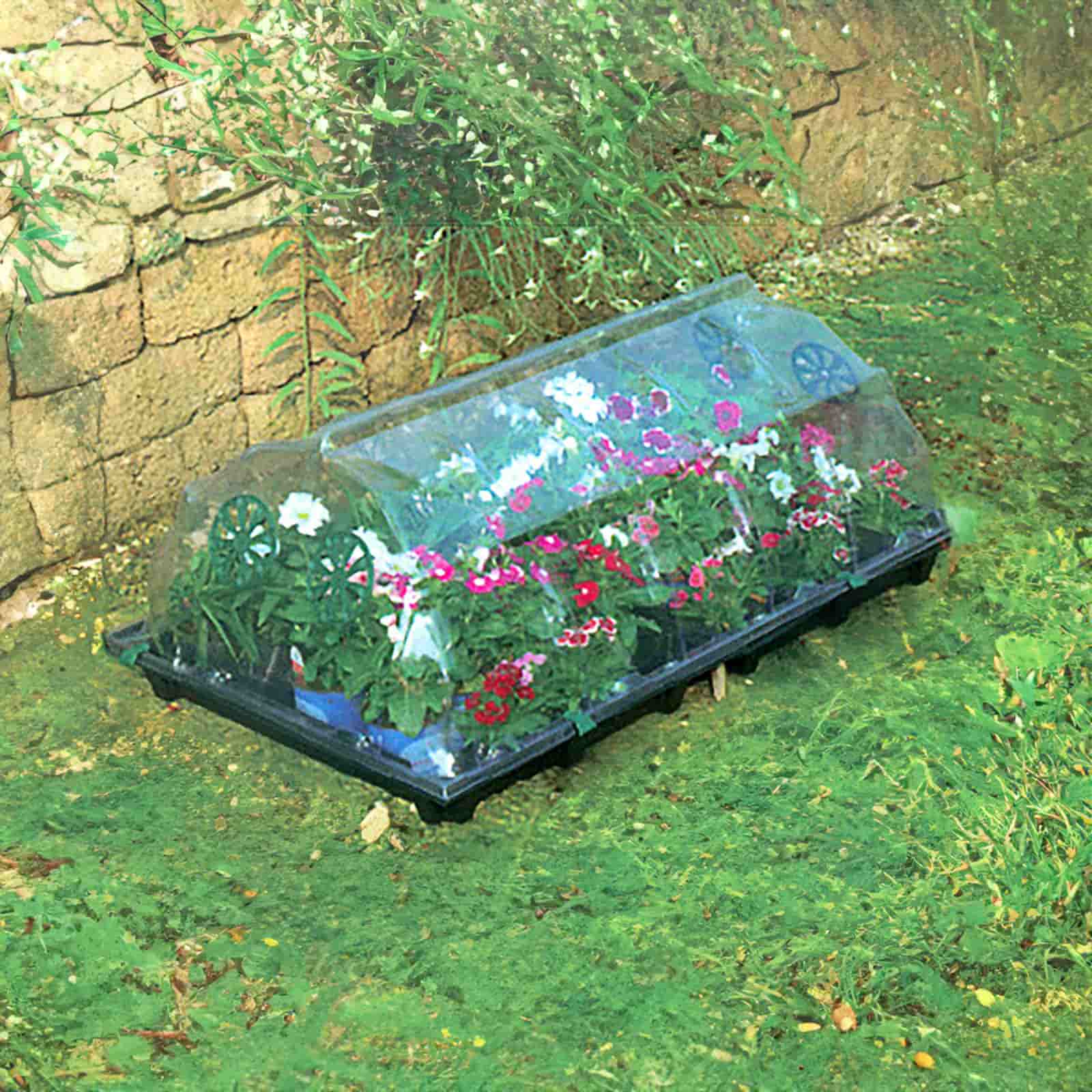 El Invernadero Floriana tiene una estructura en policarbonato resistente. Una característica distintiva de este invernadero es que es completamente transparente para que puedas controlar tus plantas en todo momento porque lleva un recubrimiento de polietileno. Su doble ventilación lateral es perfecta para regular el aire que entra en su interior. Muy recomendado para instalar en zonas reducidas como terrazas, balcones o patios y, así, poder conservar y proteger tus plantas pequeñas frente a las heladas.