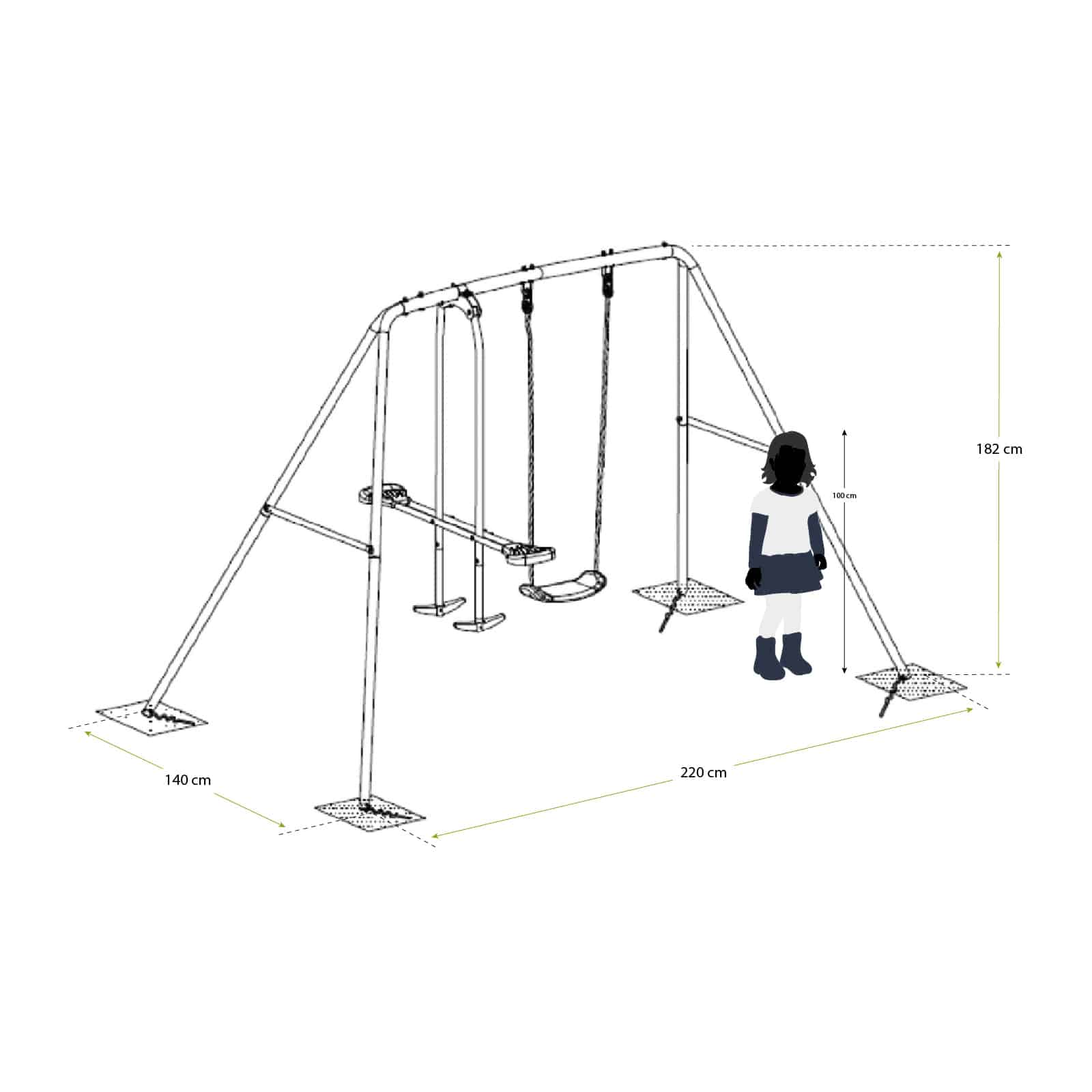 Columpio infantil metal 220x140x182cm. 1 asiento + 1 balancín. Outdoor Toys