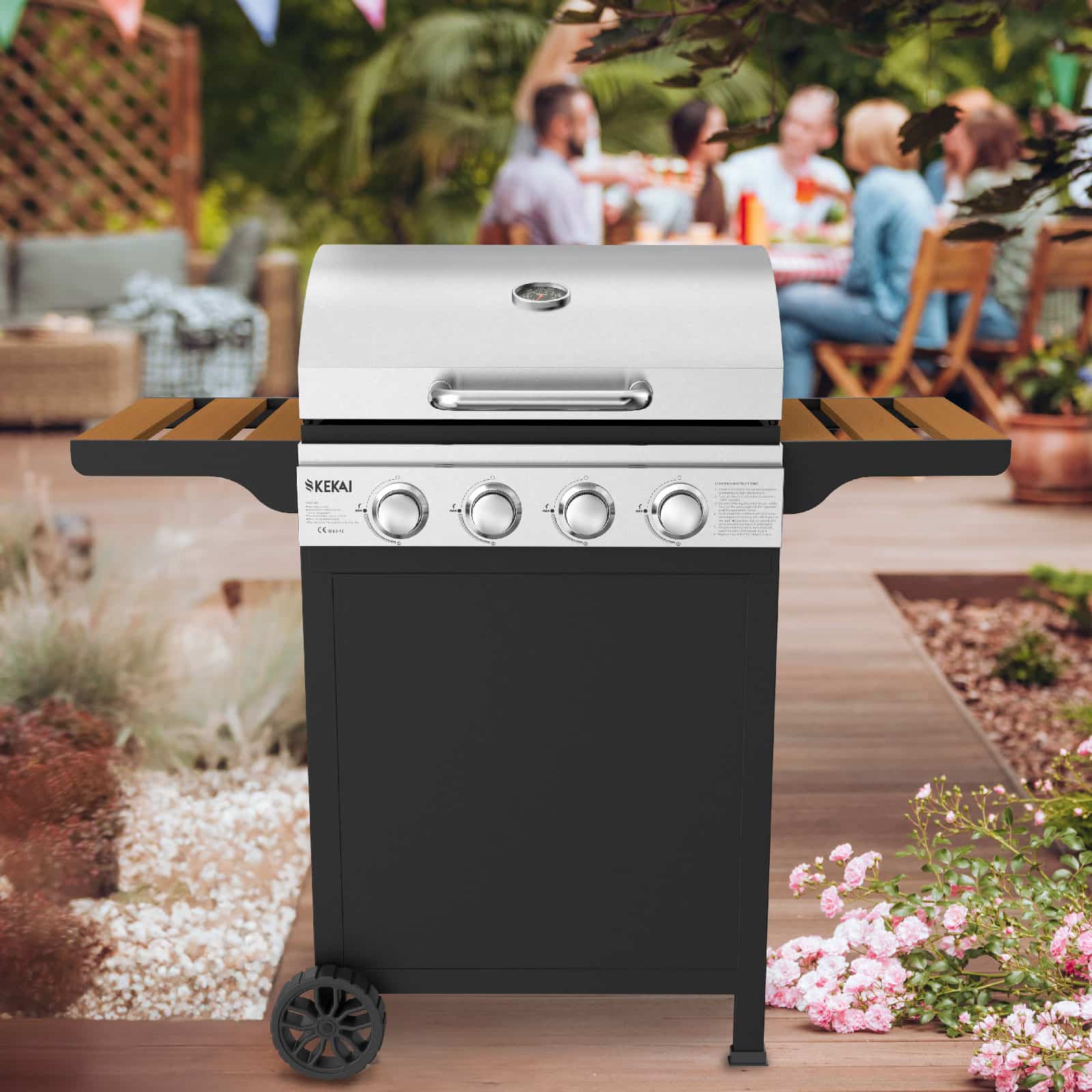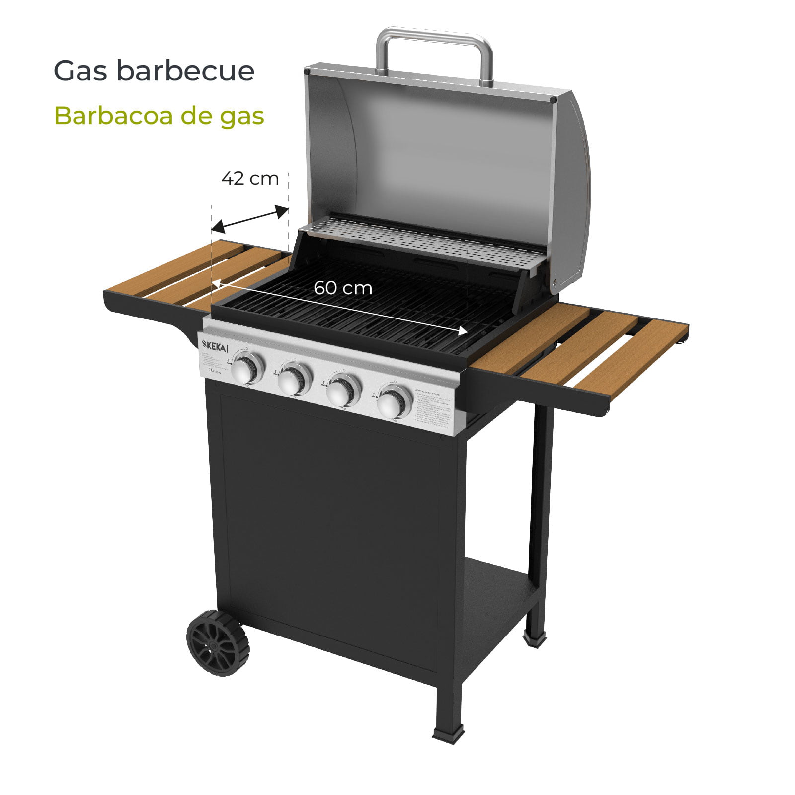 Su sistema de encendido es automático. Está equipada con cuatro quemadores y un termómetro en la tapa para que controles perfectamente la temperatura de cocción de tus asados.