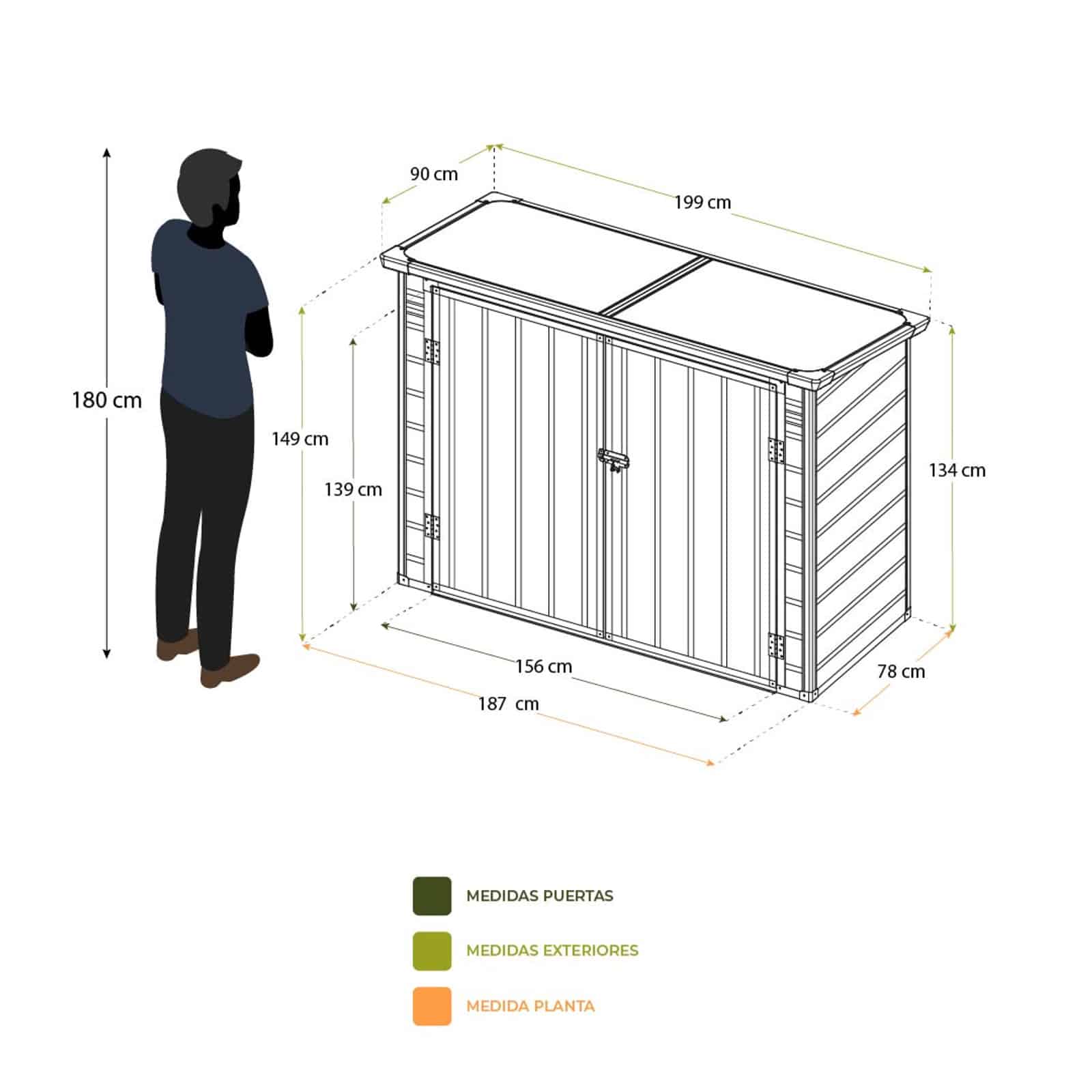 Su estructura es de acero zincado, su tejado esta inclinado para evitar que la lluvia se acumule y cuenta con suelo. Así todo lo que guardes en este cobertizo se mantendrá seco y bien protegido.