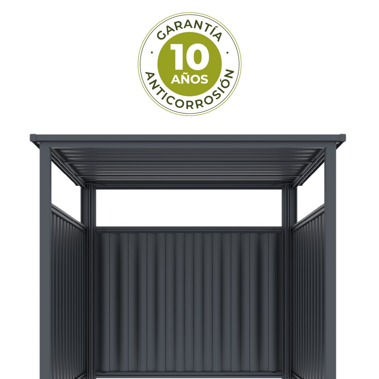Está pintada tanto por dentro como por fuera y su acabado es realmente bueno. Su color gris shinny quedará muy elegante en tu jardín o en tu patio.