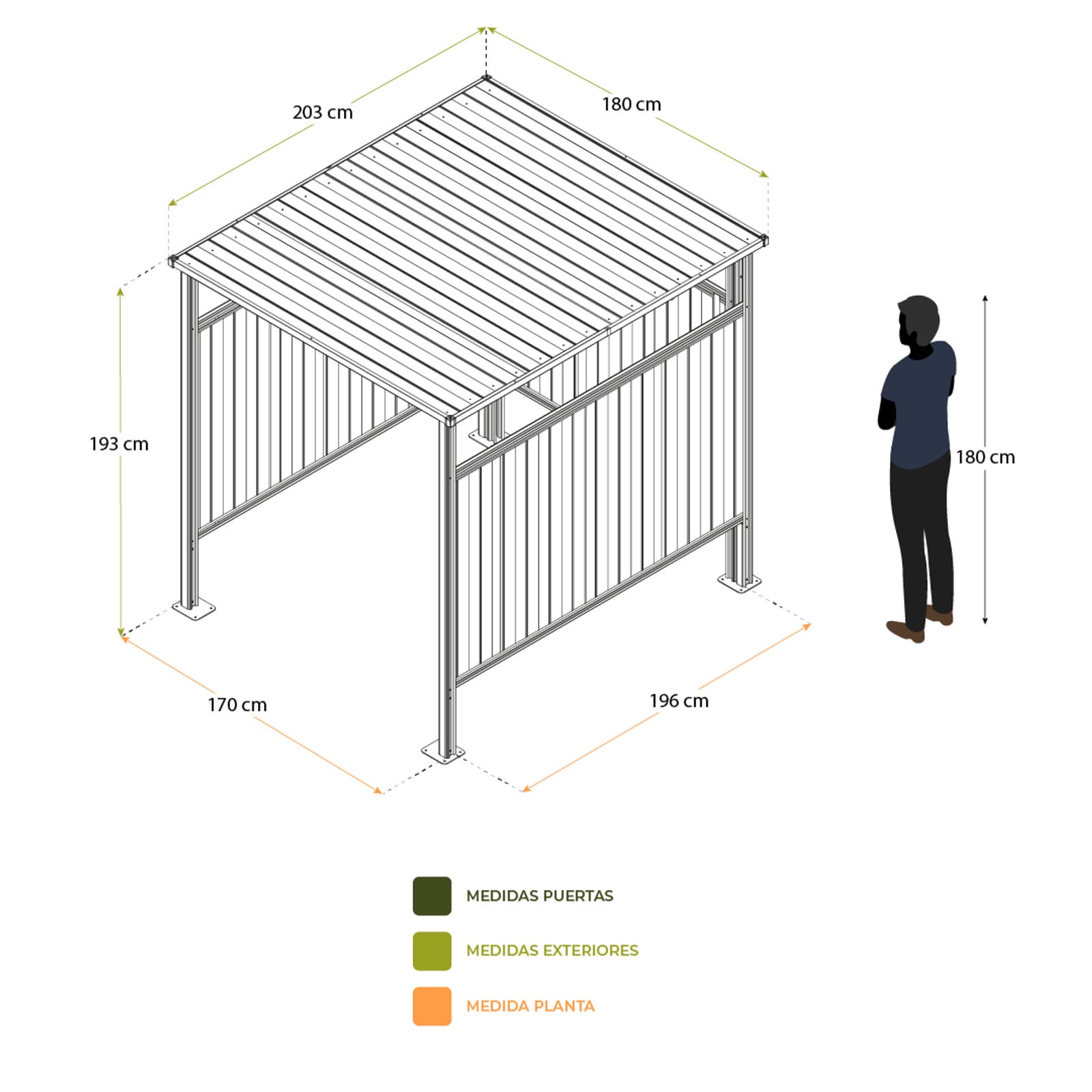 Su diseño funcional es el refugio perfecto para bicicletas, motos o para cualquier maquinaria de pequeño tamaño que quieras proteger de la lluvia, el granizo o el sol intenso.