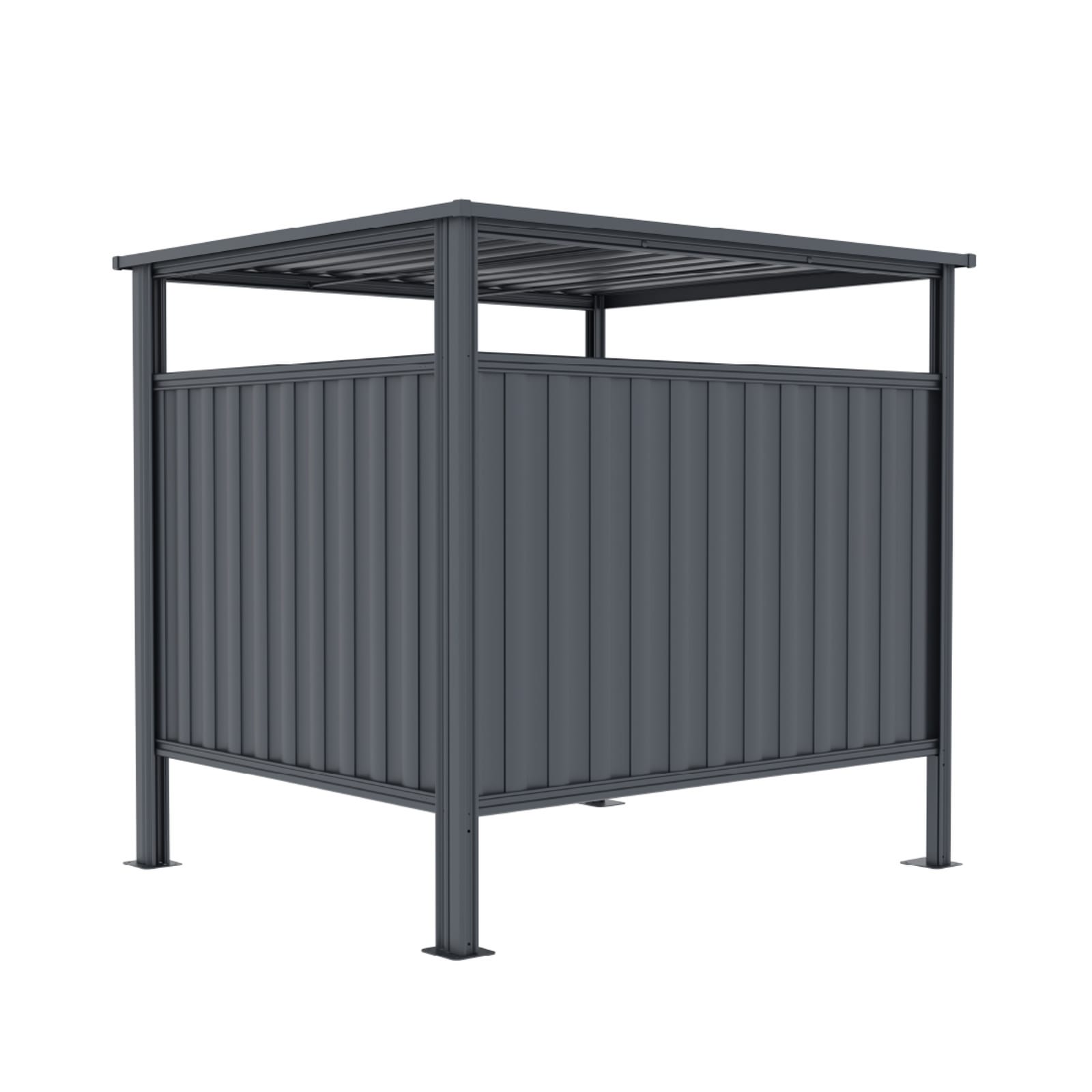 Caseta cobertor en acero galvanizado de 0,40mm. Estructura de acero zincado. Pintado por fuera y por dentro. Color: gris shinny. No tiene suelo