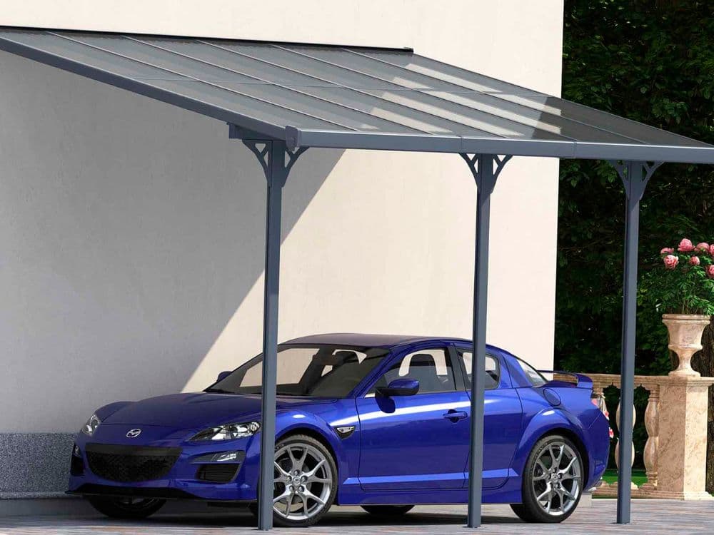 • Estructuras de acero con policarbonato: resistentes al granizo y con protección UV. Cuentan con sistema de drenaje integrado y ofrecen flexibilidad de montaje gracias a sus ajustes tanto en horizontal como en profundidad. Encontrarás diferentes medidas.