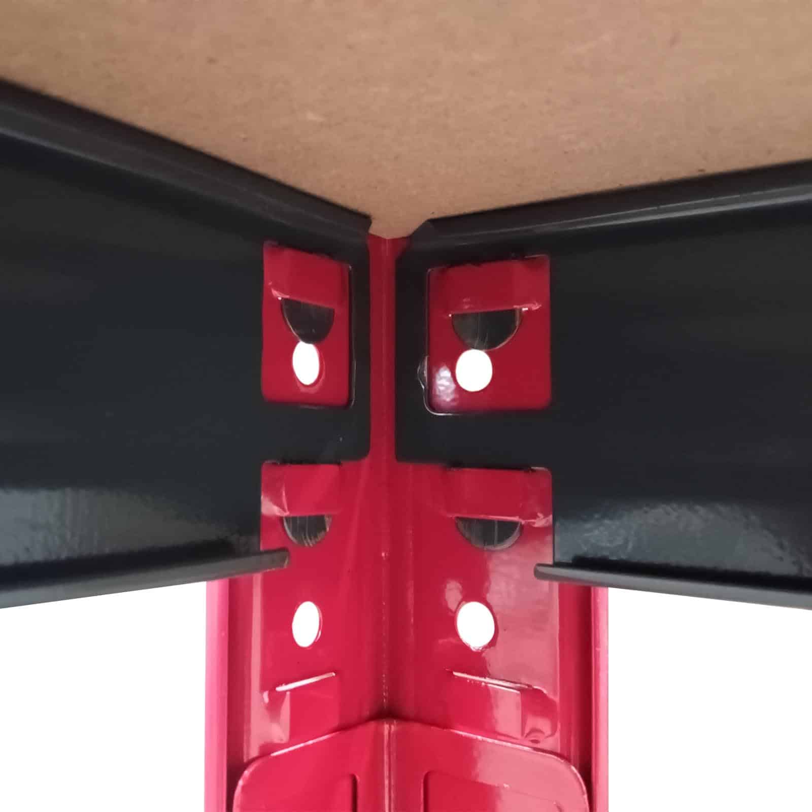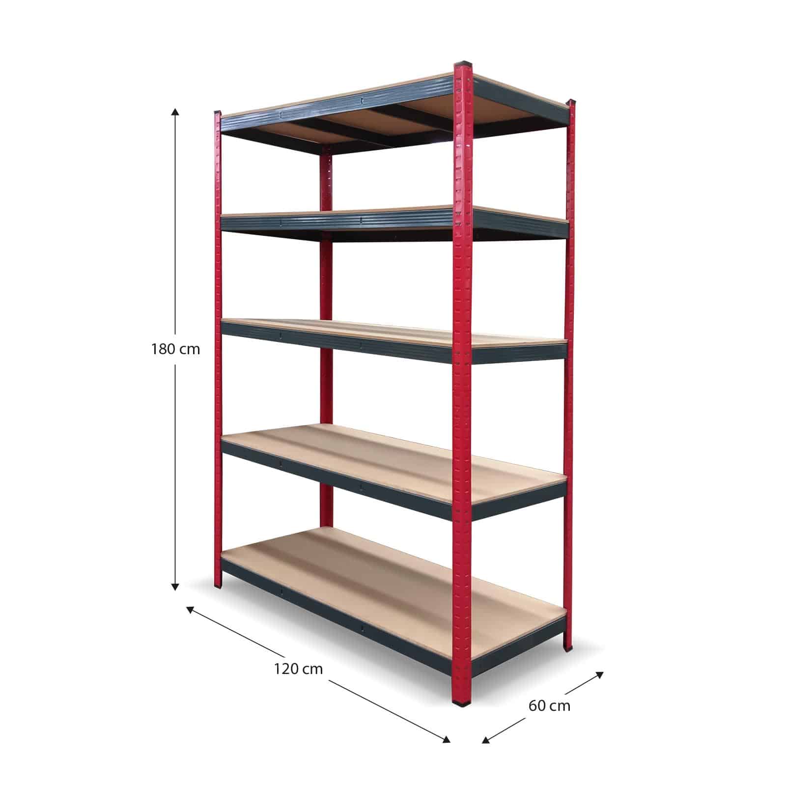 Estante Rack Cargo Advance 120. Fabricada com uma estrutura de aço galvanizado de 0,9 mm de espessura. Dispõe de 5 prateleiras em MDF com uma espessura de 9 mm, reguláveis em altura e concebidas para suportar cargas pesadas, com uma capacidade até 300 kg por prateleira, o que equivale a um peso total de 1500 kg. A sua conceção modular permite-lhe ser combinada com outras estantes do mesmo modelo. Possui certificação CE e REACH.