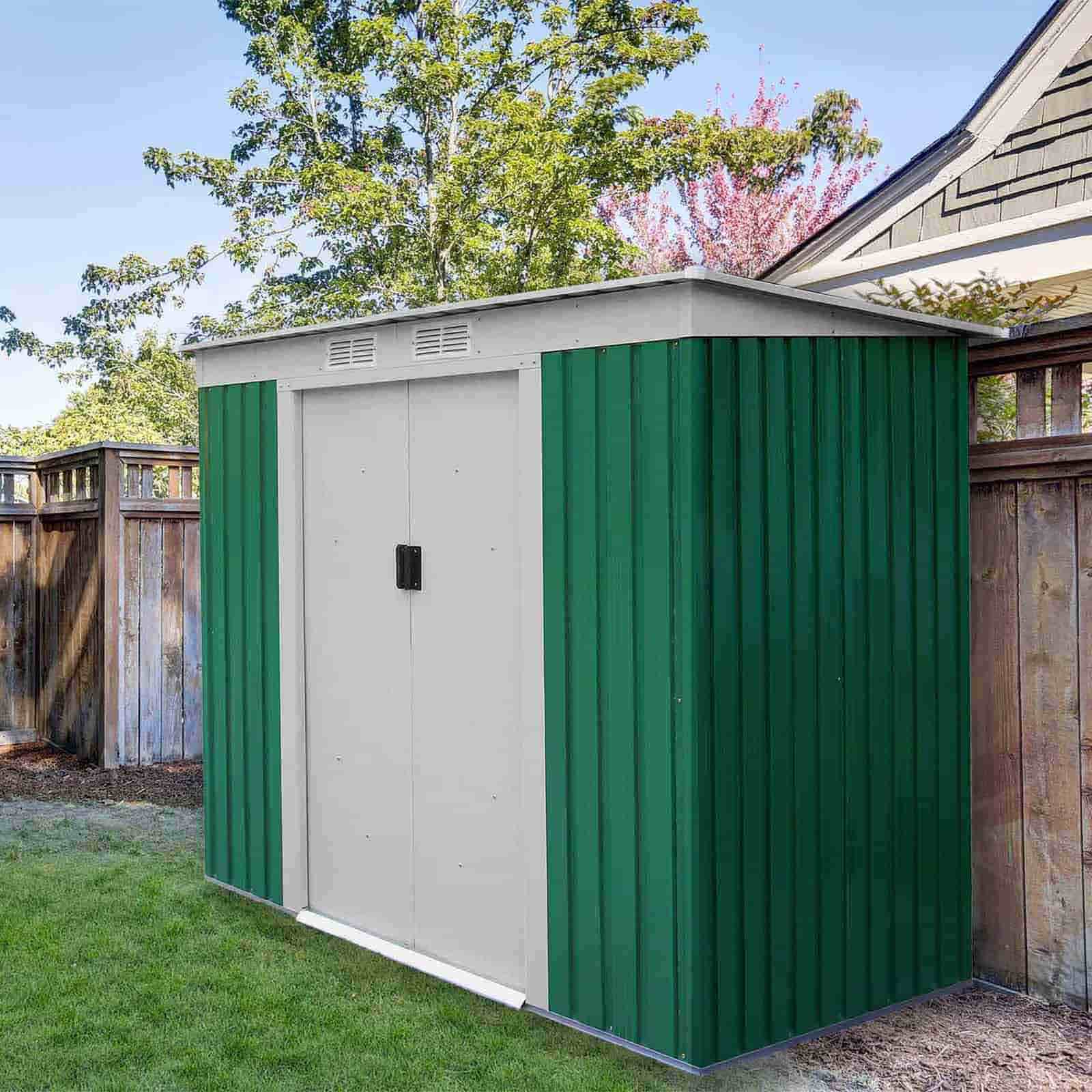 Abrigo de jardim em metal 121x201x176 cm (2,43 m²) Buckingham verde