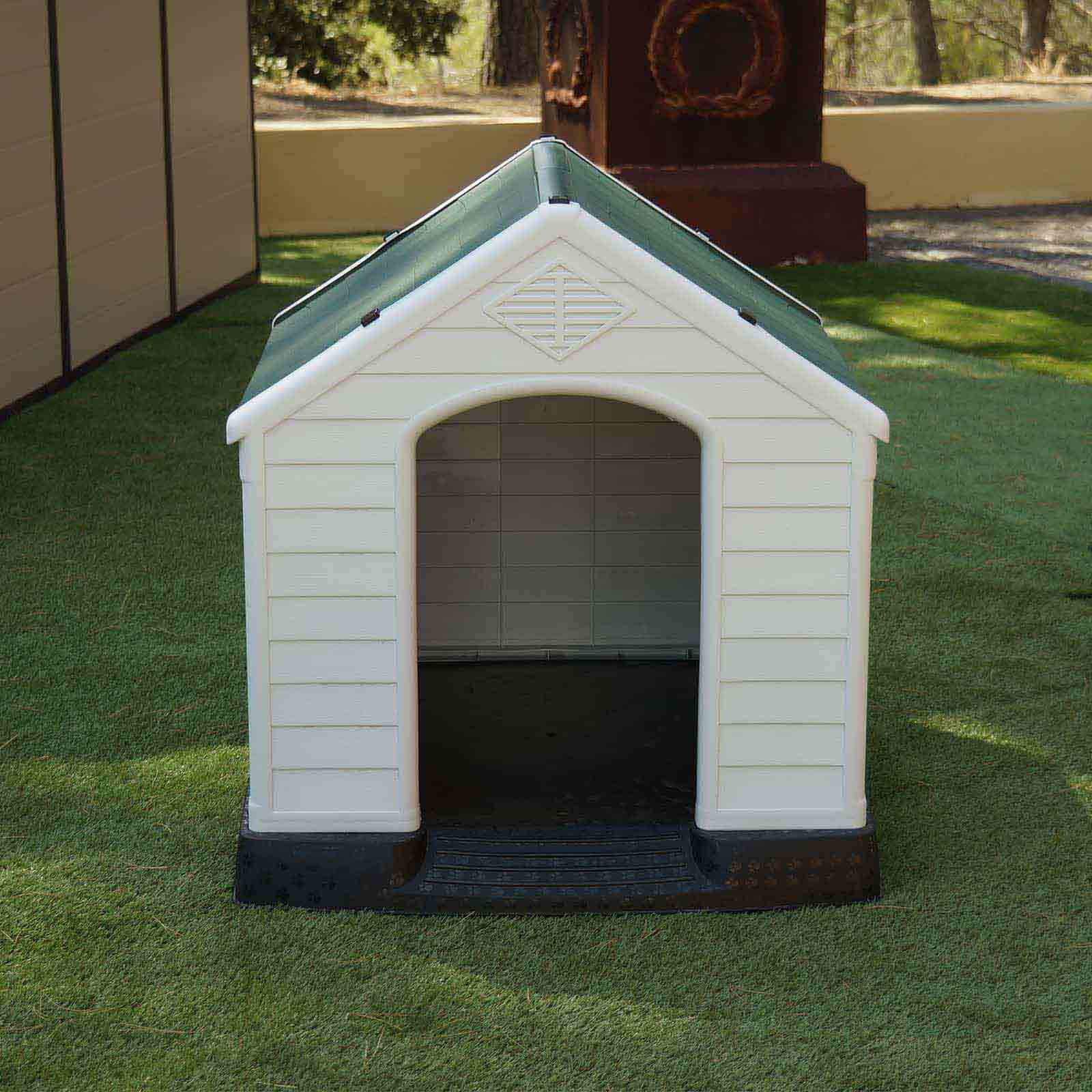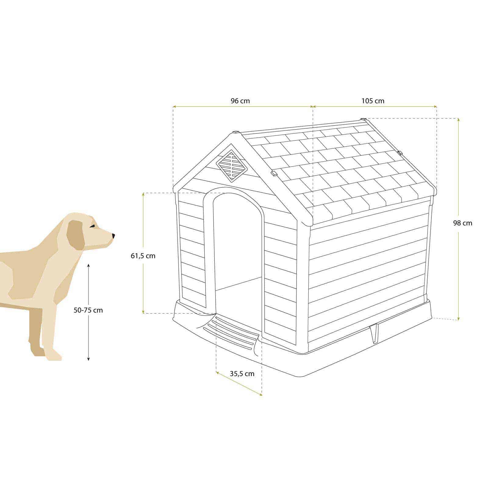 Recomendação: é perfeita para cães de raças grandes, pois tem espaço suficiente para que se sintam confortáveis. Além disso, o seu esquema de cores verde e bege adapta-se perfeitamente a qualquer espaço exterior.